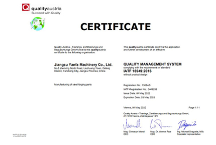 取得IATF16949:2016、ISO9001等體系認(rèn)證
